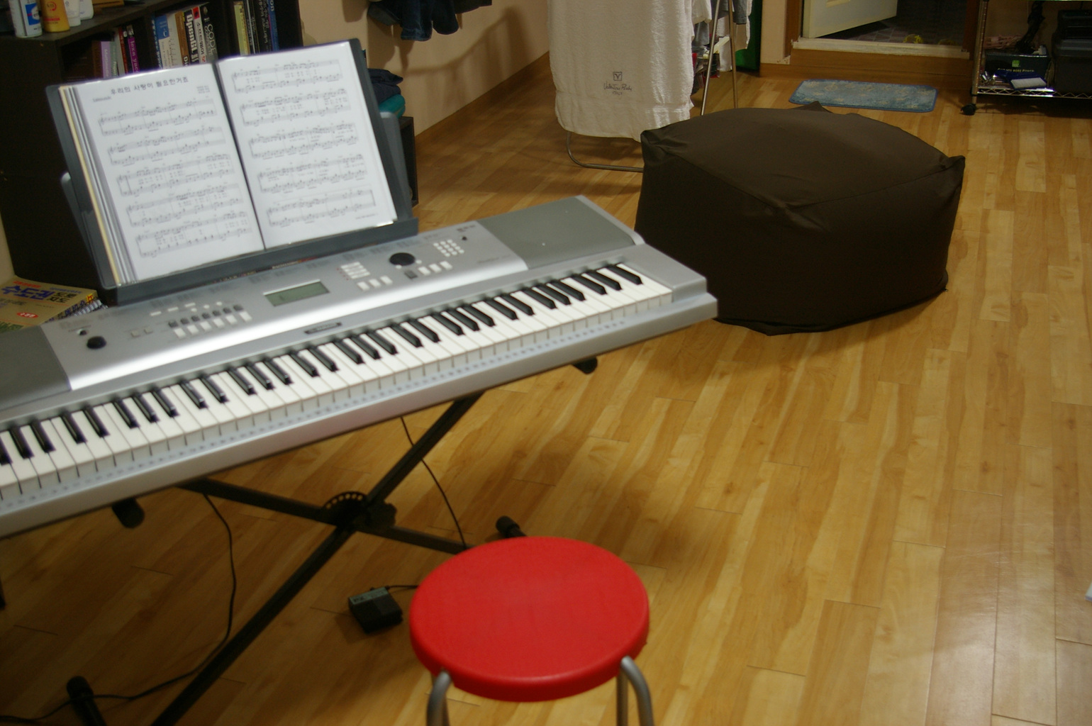 위 사진에서 보이는 갈색 큐브 모양이 그 제품인데, 사람이 앉으면 거기에 따라 모양이 변형됩니다. 책꽂이 옆에 놓았더니 책 볼 때 참 좋네요. 암 생각 없이 앉아있기도 좋고, 앉아서 뭐를 읽기도 좋고 비싸다는 점만 제외하면 굉장히 맘에 듭니다. 히힛~