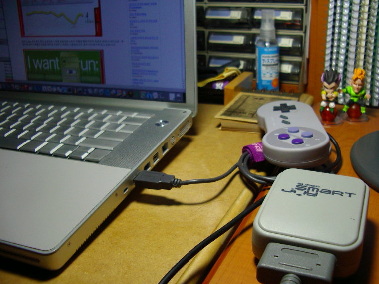 얼마 전에 ebay 를 떠돌다가 발견한 smart joy 입니다. SFC 용 패드를 usb interface 로 연결시킬 수 있도록 해주는 컨버터로 Mac OS X / linux / ms windows 에서 아무 설정없이 사용할 수 있다는군요.