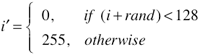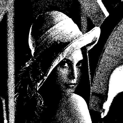 말로 설명하자면 랜덤 값을 더해준 뒤 128 을 기준으로 Thresholding 을 한다! 정도로 표현이 가능할 듯… 이론적으론 매우 간단하지만 효과는 확실하다. -16~16 의 랜덤 값을 이용하여 dithering 한 결과는 다음과 같다.